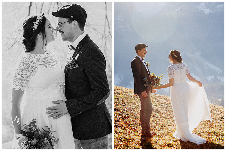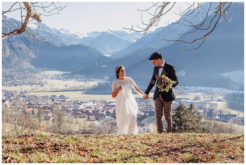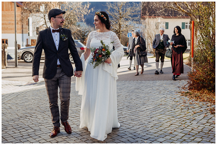 Hier zeige ich euch eine Hochzeit, die wegen Corona viel kleiner ausfiel, als geplant. Magdalena und Hansjörg haben sich aber dadurch nicht beirren lassen und feierten eine sehr schöne, kleine Familienhochzeit. Als ich die beiden im herbstlichen Hindelang traf, waren wir alle sehr glücklich darüber dass wir so ein wunderbar warmes Novemberwetter geschenkt bekommen haben. Nach dem Paarshooting gings dann ins Standesamt und da ja so gut wie keine Gäste teilhaben durften, wurden die beiden beim Rauskommen von ihren Freunden überrascht und der Hochzeitswalzer fand einfach auf der Straße statt. Einmalig !